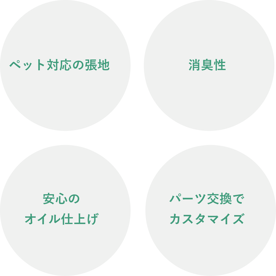 耐久性に優れた張地や、汚れを落としやすいファブリックをご用意。