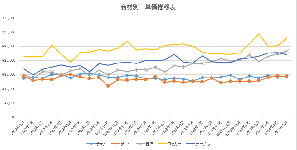 ◇デスク=前月比209円減少、前年同月比も1680円減少した。単価は下がったものの販売数量は好調で、チェアと合わせた購入者が多い。