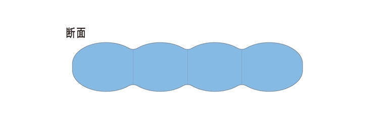レイヤーキルト(二層式)により裏と表でキルトの大きさのパターンが異なり、