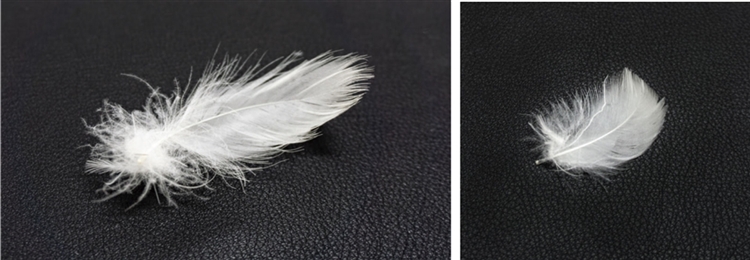 鳥の羽と聞いて思い浮かべる形のものは、羽(フェザー)と呼ばれ、吸放湿性の良い羽毛。