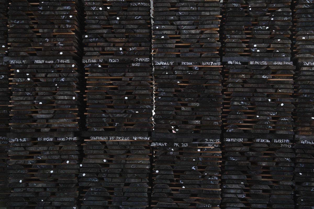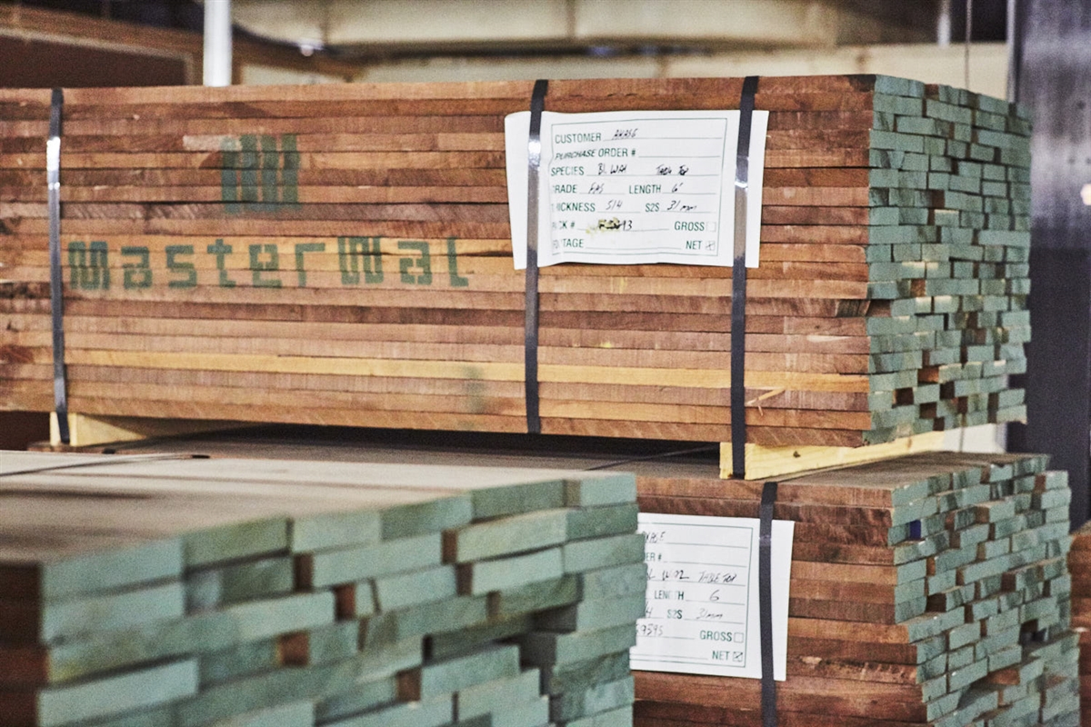 製材されたウォールナット材が積み重なったランバー材の小口面をモチーフとしたモダンでかわいいデザインです。