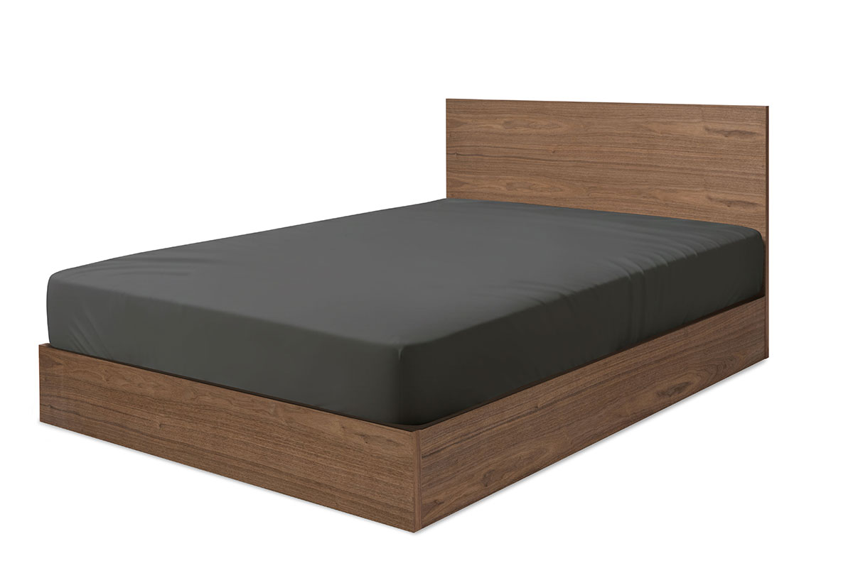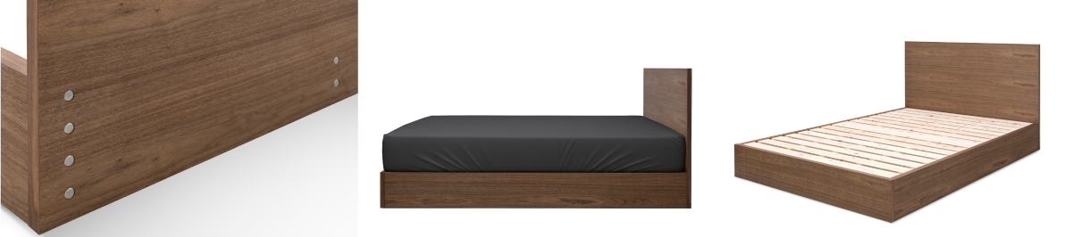 空間の一部のように静かに溶け込む、突板のフラットな質感と構造を活かした、ミニマルなベッドフレーム。