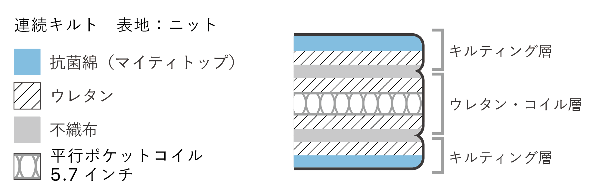 5.7インチ(145H)のポケットコイルを採用した、薄めのボリュームに対してしっかりとしたサポート力が特長のレギュラーモデルのマットレス。