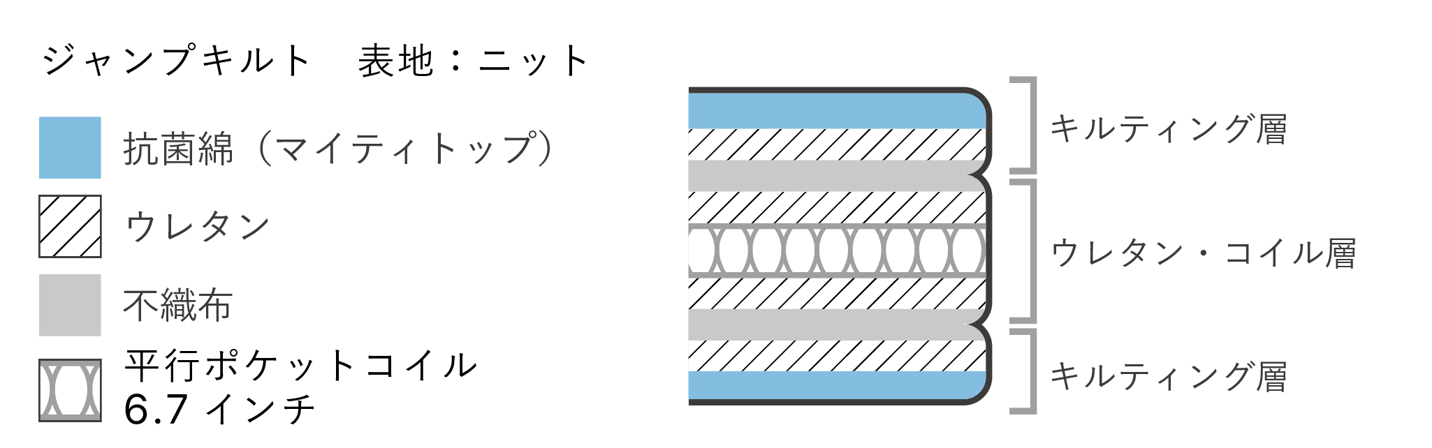 6.7インチ(175H)のポケットコイルを使用した、上位モデルのマットレス。