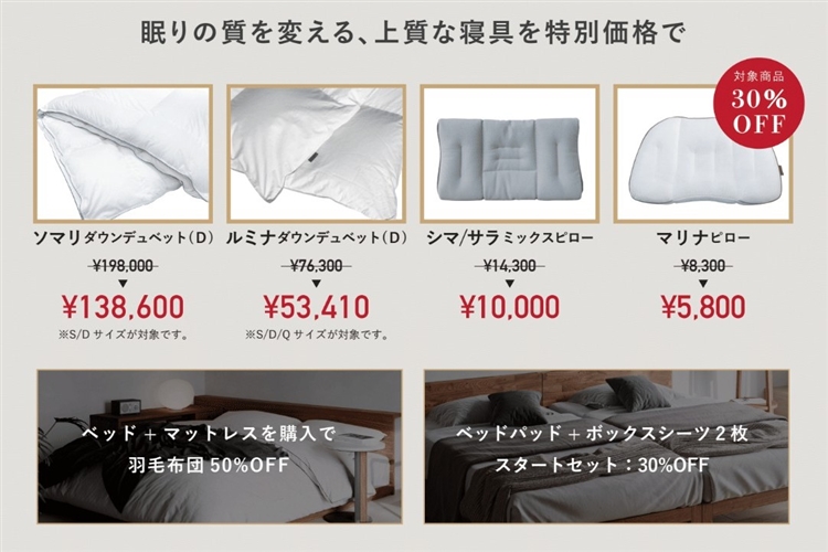 眠りの質を変える上質な寝装品がお得なこの機会に、ぜひご利用くださいませ。