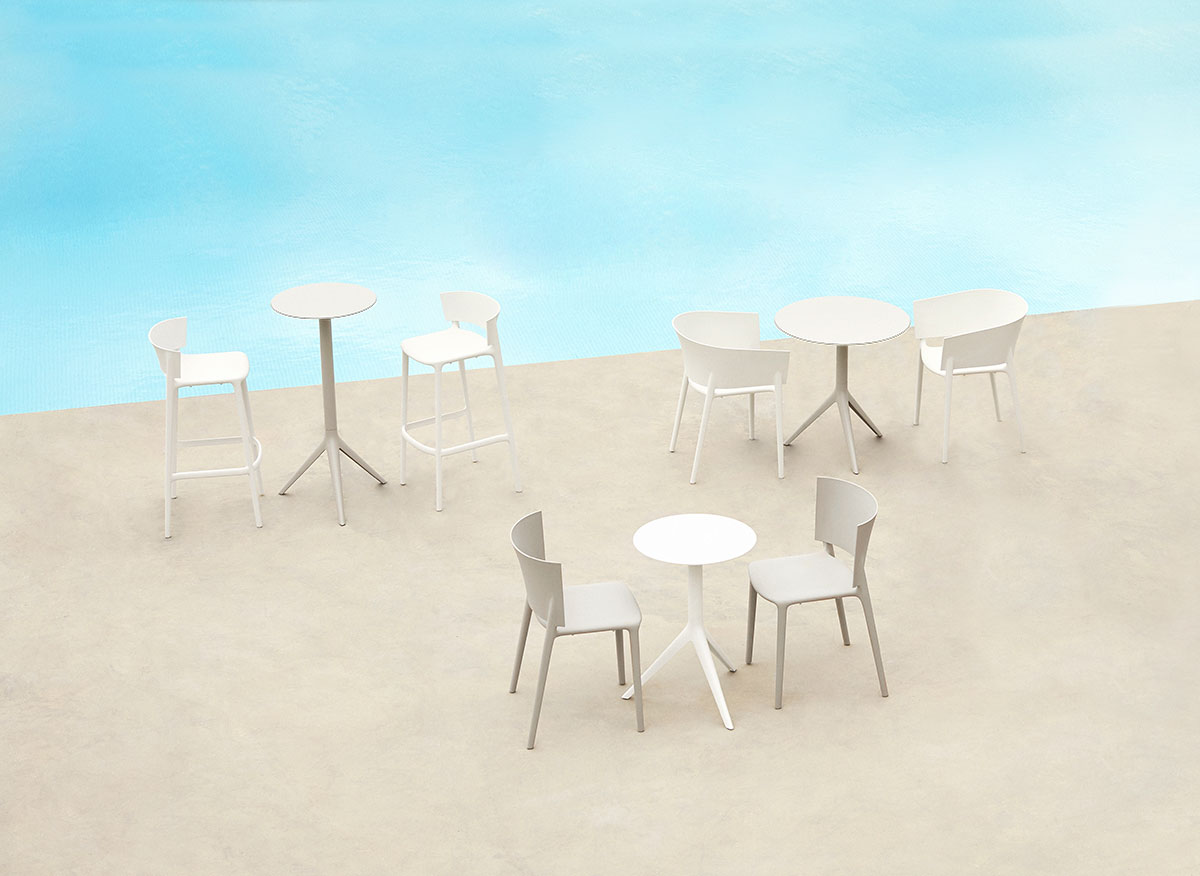 Eugeni Quitlletが手がけた「AFRICA(アフリカ)コレクション」は、シンプルであることの中に宿る独創性を体現したアウトドア家具シリーズです。無駄を削ぎ落としたフォルムは、視覚的な軽やかさと快適な座り心地を両立し、屋外空間に自然となじみながら、洗練された印象を与えます。
