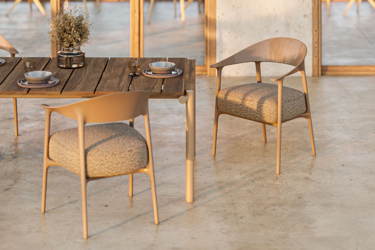 テラスやガーデン、リゾート、商業空間、公共施設まで、建築や環境と呼応する存在としてデザインされ、家具そのものが空間の印象や使われ方を変えていく。
