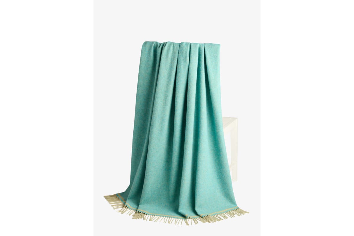 - (Dunbrody (Aqua with teal stripe))ヘリンボーン柄の高品質ラムウール製ブランケット¥27,500