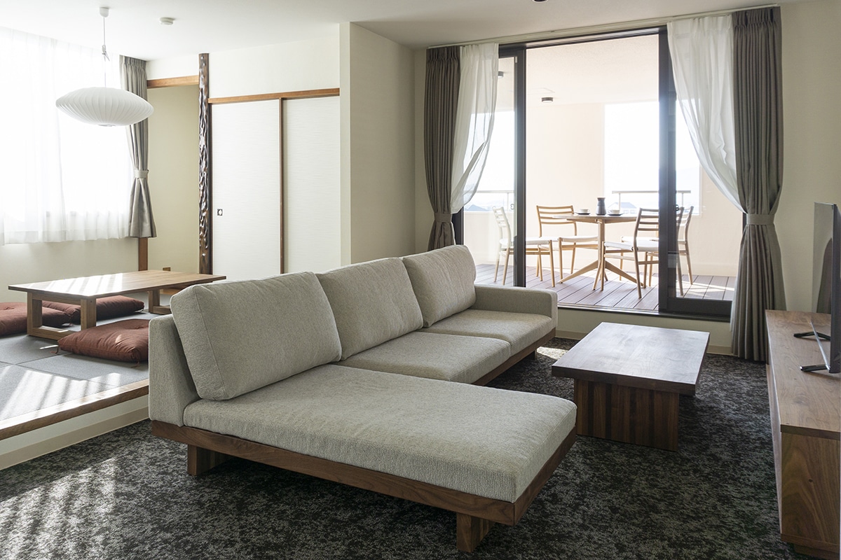 家族の団欒を優先し、これまで使用していたソファよりもサイズアップしたので、圧迫感が出て部屋が狭く感じないか不安でしたが、座間が低いためか、デニッシュソファは全く圧迫感がありません。