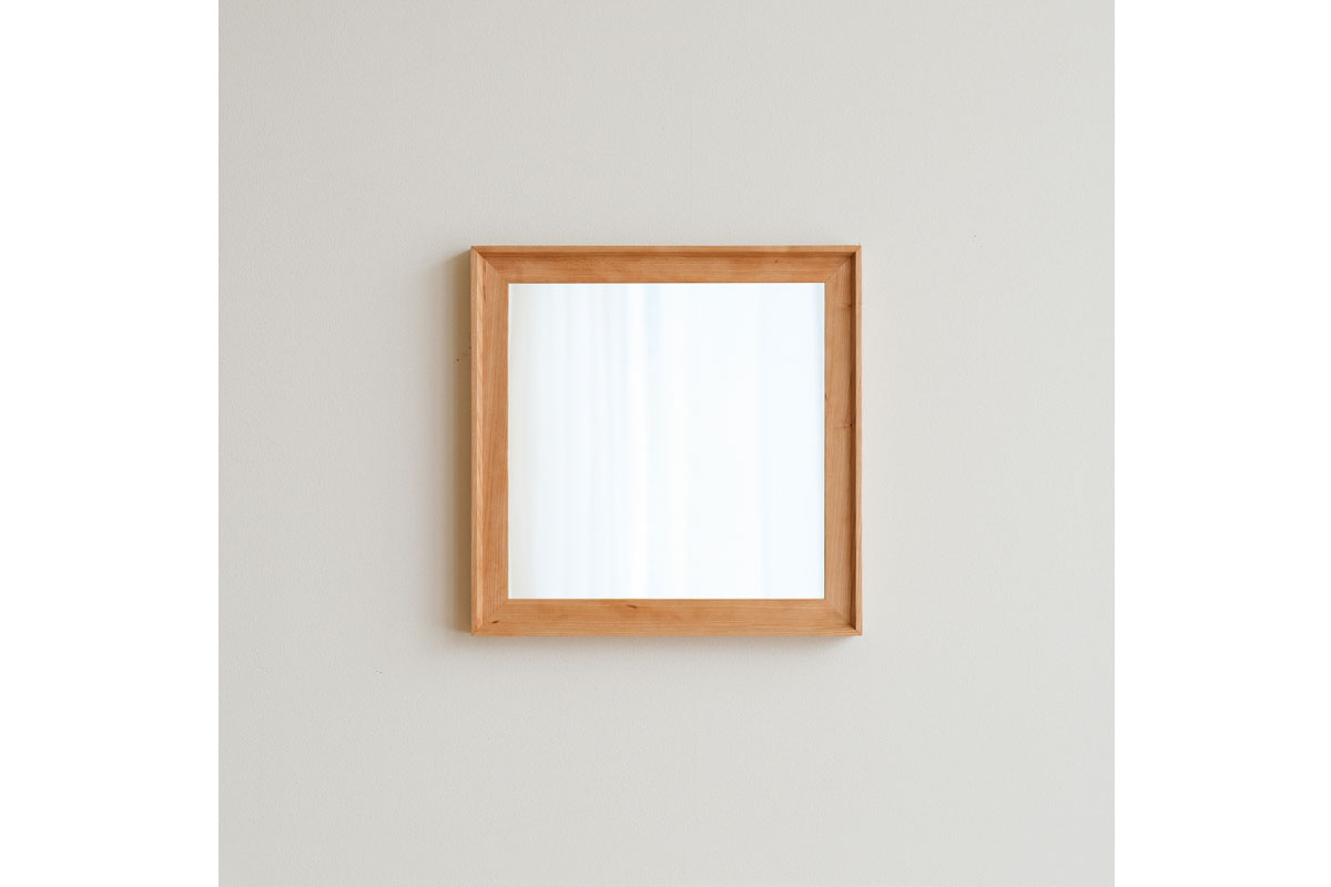 木を熟知する職人が目利きした、上質な無垢材を使用。仕上げに天然オイルを塗ることで、ていねいな研磨が生み出すマットな質感と無垢材のナチュラルな風合いを活かしています。 すっきりと端正なシルエットでどんな空間にも気持ちよく馴染みつつ、シャープなラインが空間にメリハリを与える“名脇役”です。 インテリアとしても高い完成度。紐を使わず、ミラー本体を市販のピンやフックに引っ掛けるだけの簡単設置。思い通りの位置に飾ることができ、左右の高さがズレることもありません。枠の内側には吊り下げ用の溝が施されているので安定性も抜群です。 留め具が壁に直接当たらない構造となっているため、壁と製品の間に無駄な隙間ができず、インテリアとしても高い完成度を誇ります。