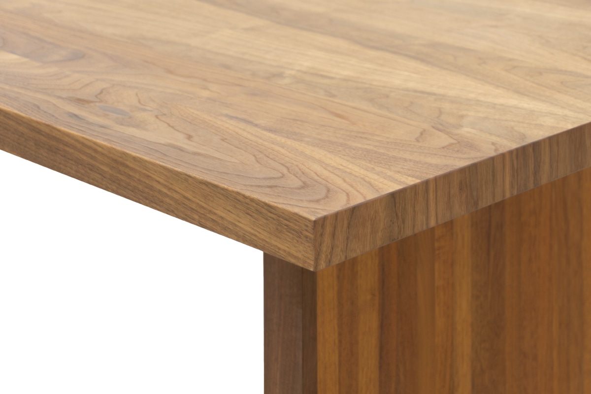 41mm厚の重厚な天板を、デニッシュシリーズのアイコニックな集成材の板脚と組み合わせた、シンプルかつ堂々としたデザイン。・環境負荷を配慮した素材、ソリッドサーフェス仕様の天板・どんなデザインの椅子とも相性の良い普遍的なデザインおすすめのシーン・ダイニング・ワークスペース機能・カスタマイズ・ドライバー1本で脚の位置や向きで4種類の脚間に変更可能・1cm単位で天板サイズ・高さのオーダーが可能(要お問い合わせ)永く愛用できる設計・オイルの塗りたしや研磨による、自宅でも可能なメンテナンス(ウレタン塗装は不可)・時代に左右されない普遍的なデザイン