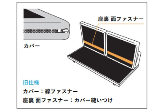 ソファ座面カバーを面ファスナー方式に統一致します。