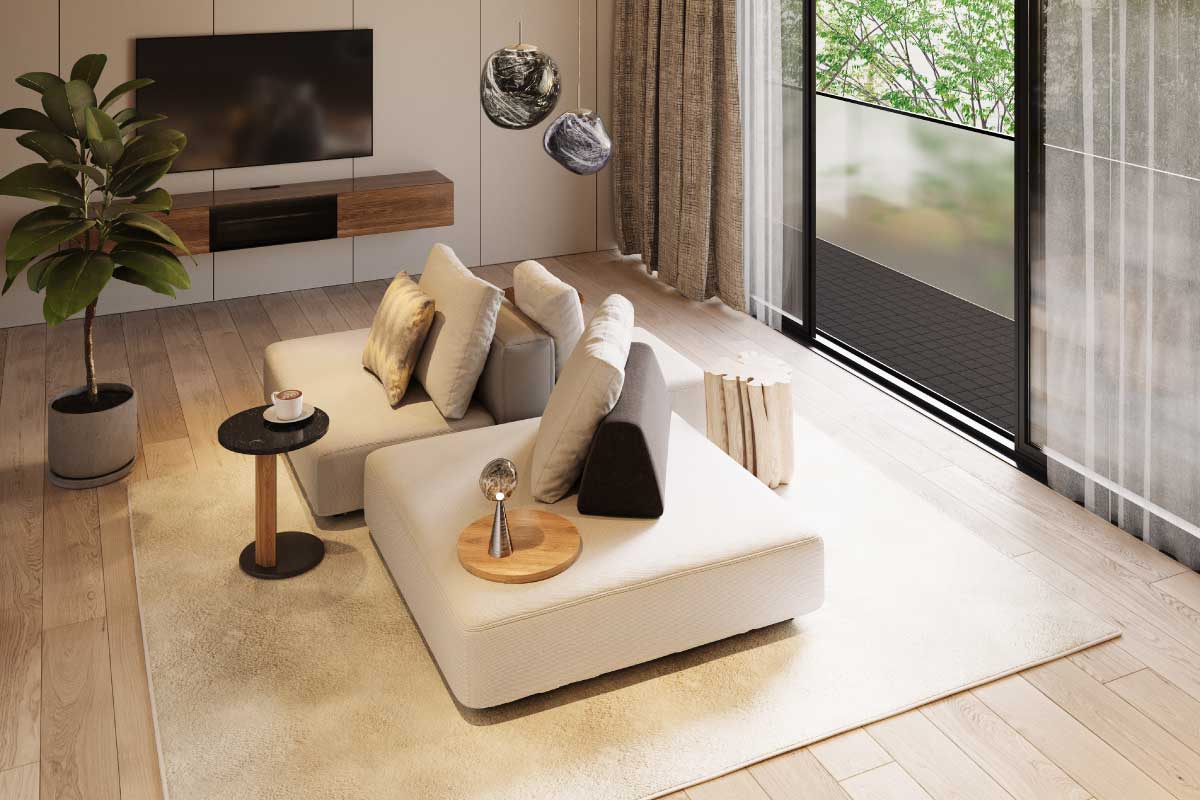 - (W200cm × D38cm)フレームレスのガラス引戸がミニマルなロースタイルテレビボード¥209,000 ~ ¥275,000