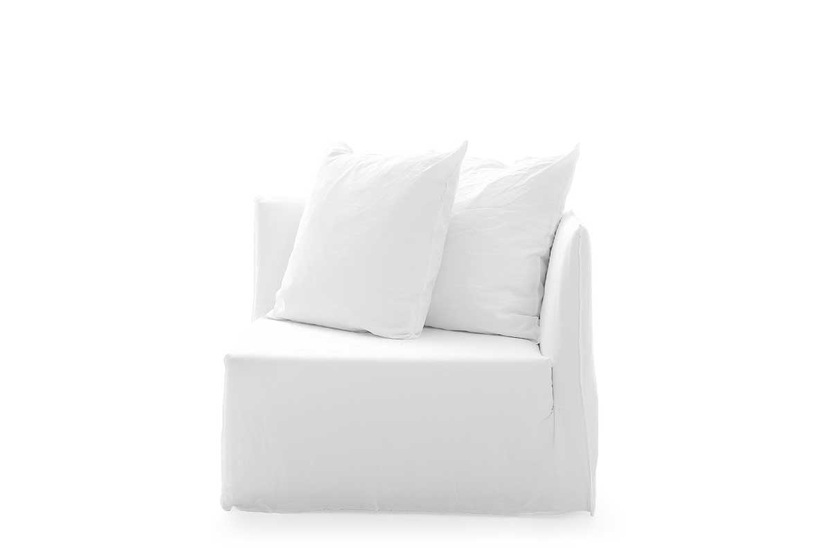 GERVASONIを代表するアイコニックなソファ・チェアのシリーズ、GHOST(ゴースト)のソファ。 カバーをすっぽりと被った佇まいは、シンプルでありながらエレガントなデザインです。カバーは簡単に着せ替えが可能で、非常に豪華な外観になるブロッケード生地や、極端にミニマルになる白いリネンなど、ファブリックによって空間の雰囲気を大きく変えることができます。