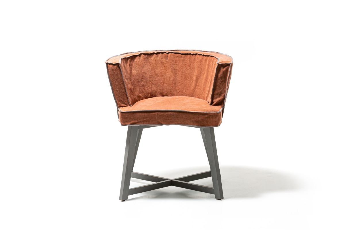 ほどよくルーズなパイピングのファブリックシートと、ウッドレッグを組み合わせたチェア。 伝統的なグスタビアン様式とシンプルな北欧テイストを融合したデザインが、GERVASONIのオリジナリティを感じさせるシリーズです。