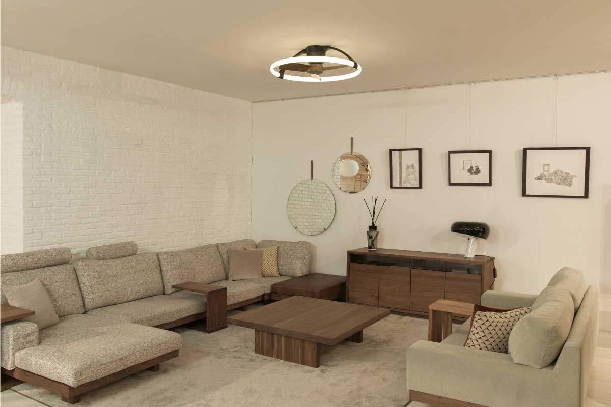 専用のリモコン・スマホのアプリで簡単操作、 今までのシーリングファンにはない21cmの薄さを実現。 LEDなので調色・調光で約12畳分の明るさ、LED部分は取り換え可能です。 ファンの回転の向きを変えることにより夏場・冬場のエアコン効率を高めます。 ファンの強さも5段階で変更可能です。