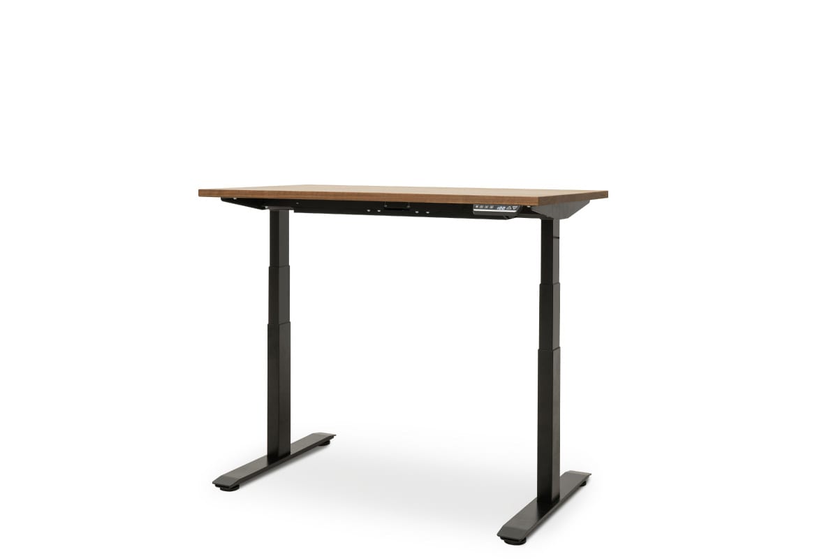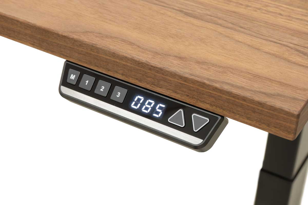 無垢材の天板を使用した、電動昇降式テーブル。