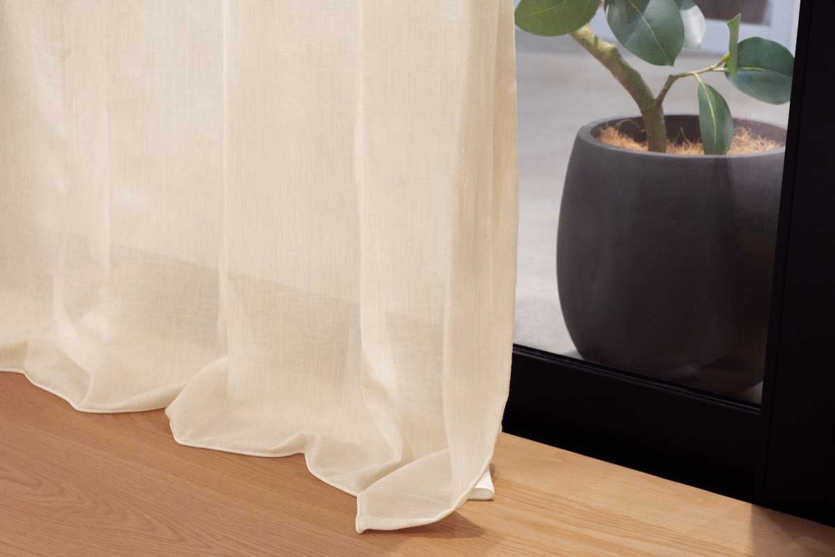 機能性に優れているだけでなく、ナチュラルな素材感のあるミラーボイルのレースカーテンです。 広幅のナチュラル調ミラーは他にあまりない商品です。 遮熱効果もあります。