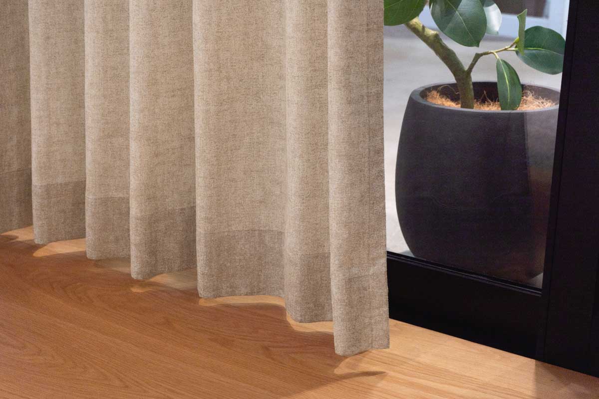 光沢感があり、薄めの生地感のドレープカーテン。透け感が無い為重厚感が出やすい生地です。特に028のアイボリー色が人気で、マスターウォールの家具とも合わせやすく、壁に馴染む色が特徴です。