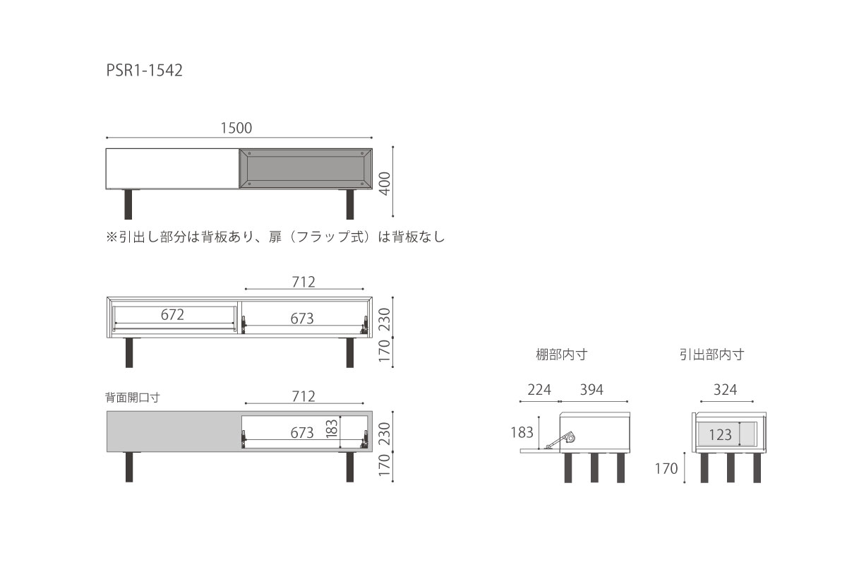- (W150.7cm×D40.2cm×H33cm)収納の機能が選べる、ロータイプTVボード¥203,500 ~ ¥280,500