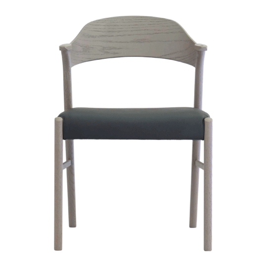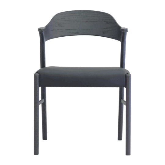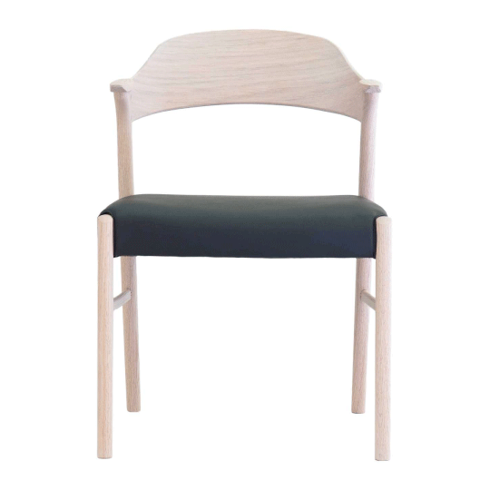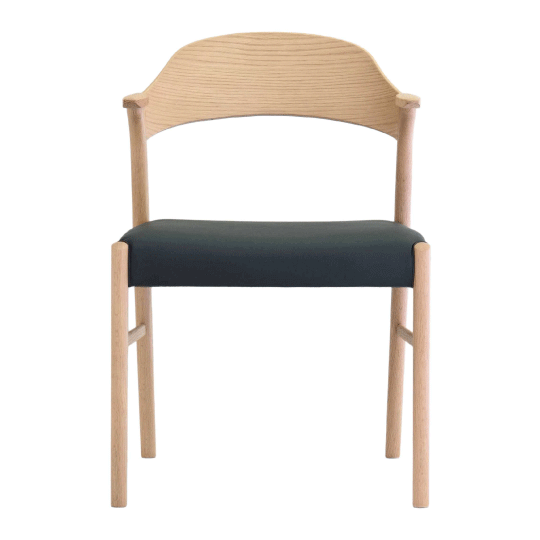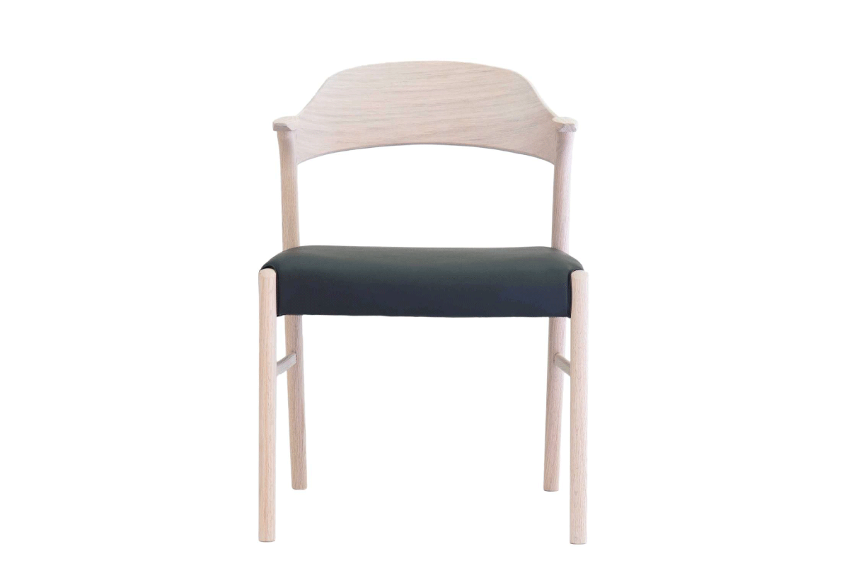 程良いカーブを描いた背板が体にフィットし、ゆったりと寛ぐことができるチェア。 ハーフアームがついているので、肘を置いてリラックスしつつも、行動しやすい形状になっています。 座面のPVCもリニューアルされ、汚れが付着しにくく、ヌメ革のようなしっとりとした肌触りに変更されました。
