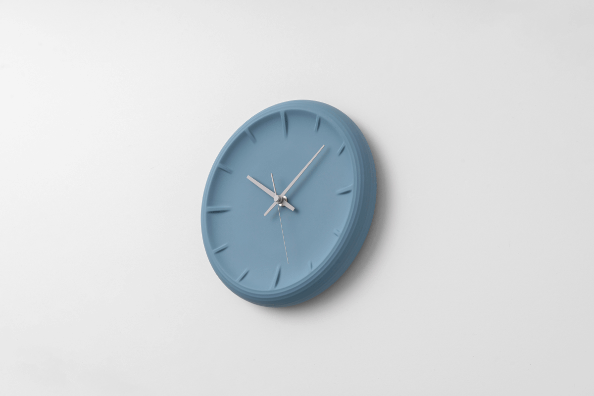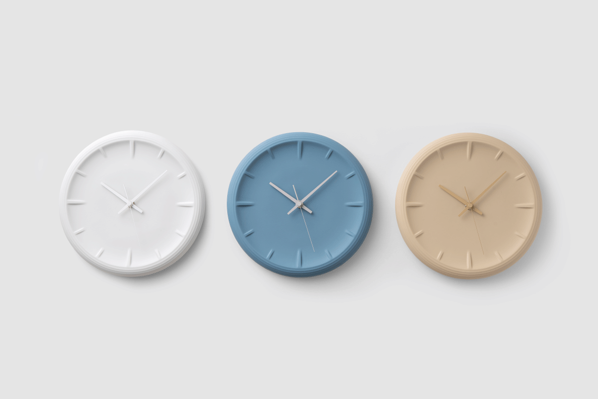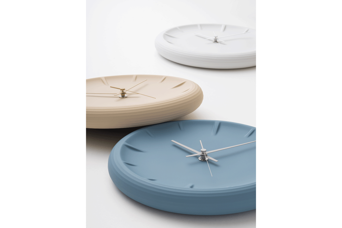外形のフレーム部分は柔らかな丸みを帯びており、壁に優美な影を落とし、時計を手に持った際には心地よい手触りを生み出します。