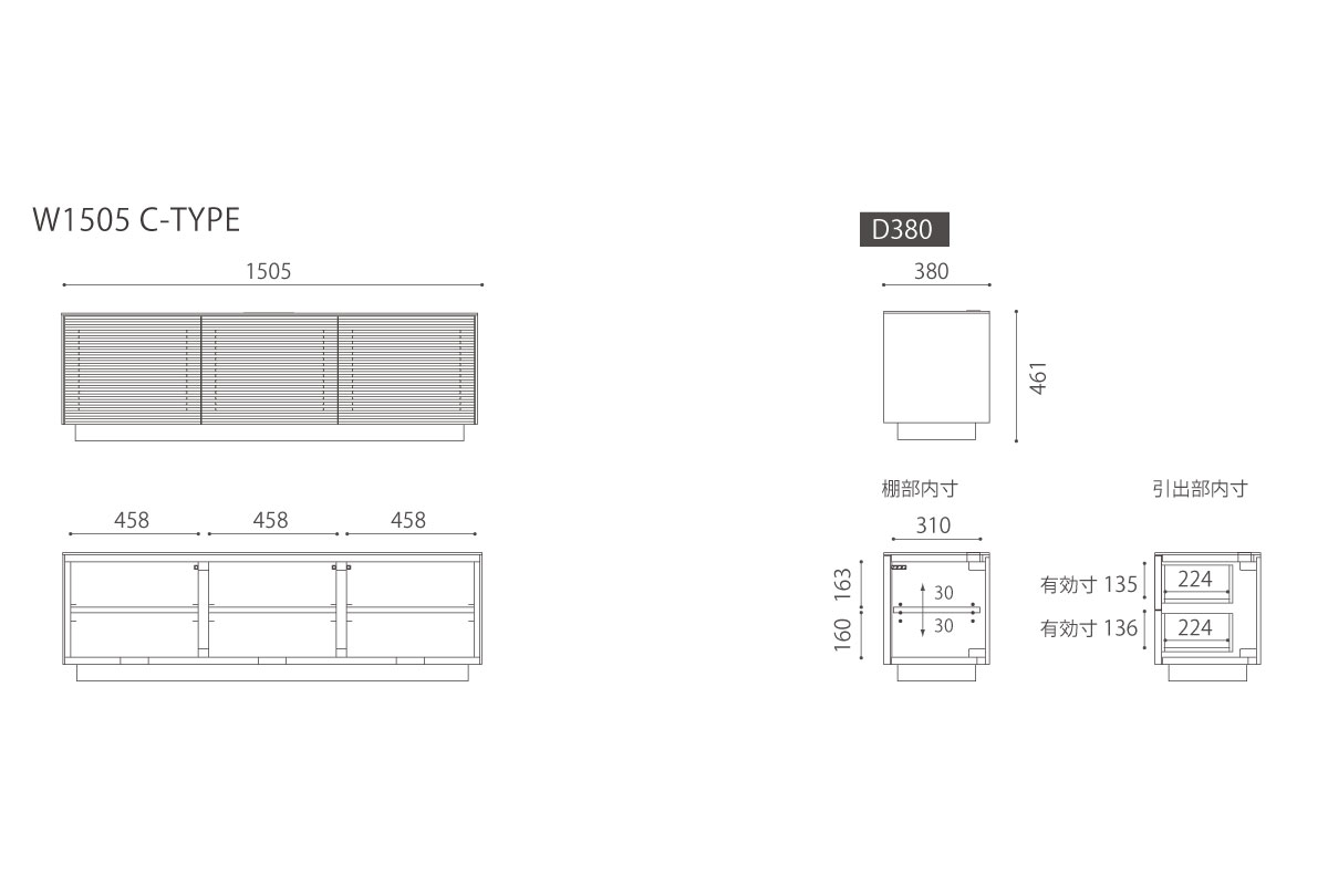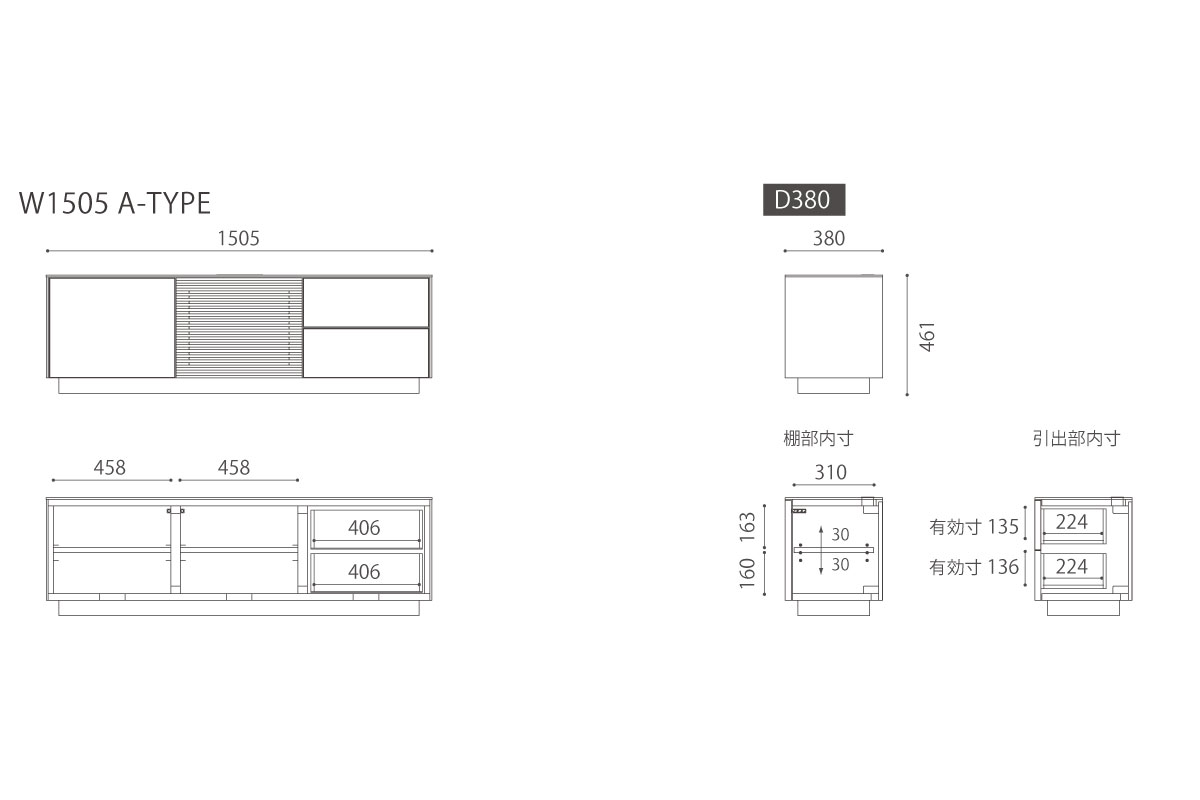 - (W150.5cm×D48cm×H46cm)フラットなデザインにルーバーのアクセント¥291,500 ~ ¥308,000
