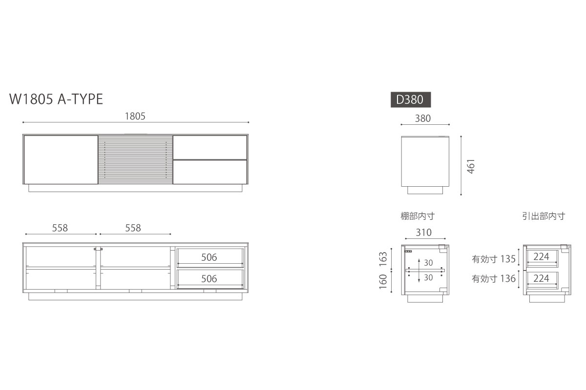 - (W181cm×D40.2cm×H28cm)収納部分をモジュール化したシンプルなフロートボード¥236,500 ~ ¥313,500