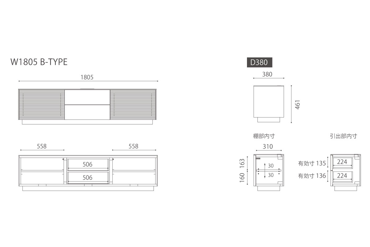 - (W180.5cm×D48cm×H46cm)フラットなデザインにルーバーのアクセント¥302,500 ~ ¥319,000