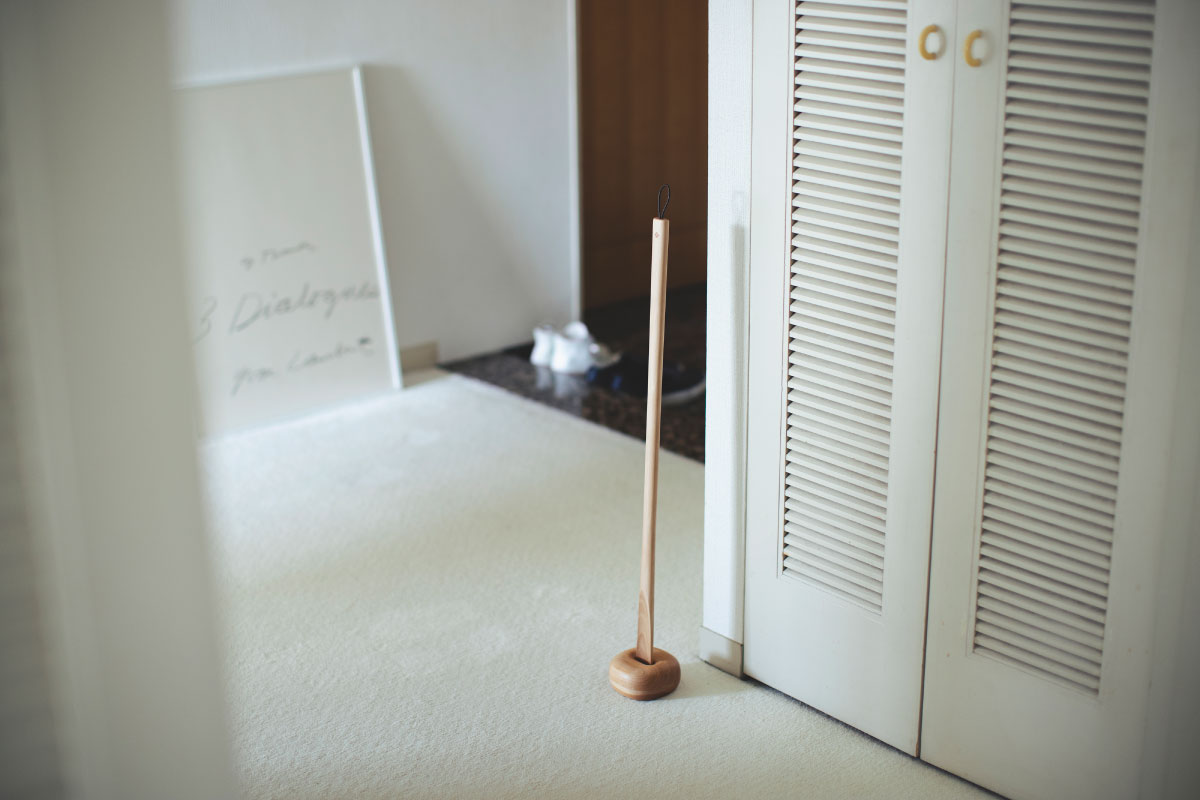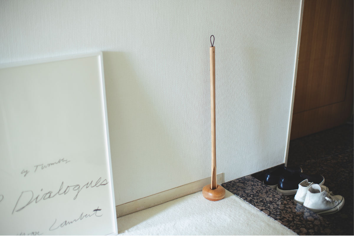 立ち姿は凛として美しく、使用する時は手に馴染み足をスムーズ滑らせて、床置きのホルダーは靴ベラを吸い込むように収まっていく。