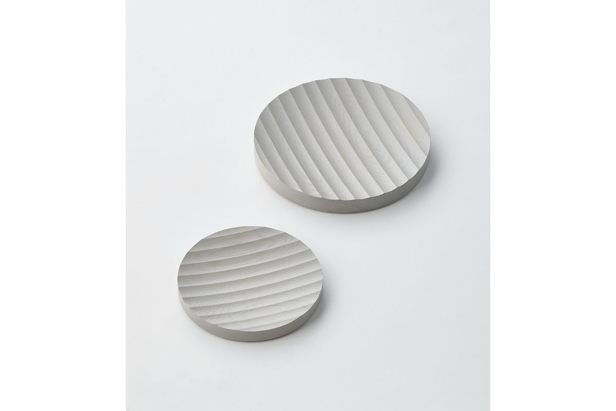 表面の波型加工はフルーツや食材を点で支えることで鮮度を保つとともに、小物を置いた場合にも取りやすい使い手に寄り添うセンターピースです。