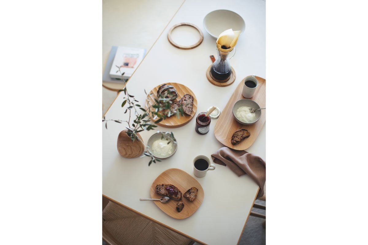 表面の波型加工はフルーツや食材を点で支えることで鮮度を保つとともに、小物を置いた場合にも取りやすい使い手に寄り添うセンターピースです。