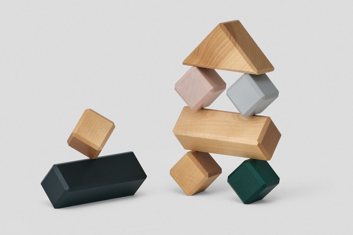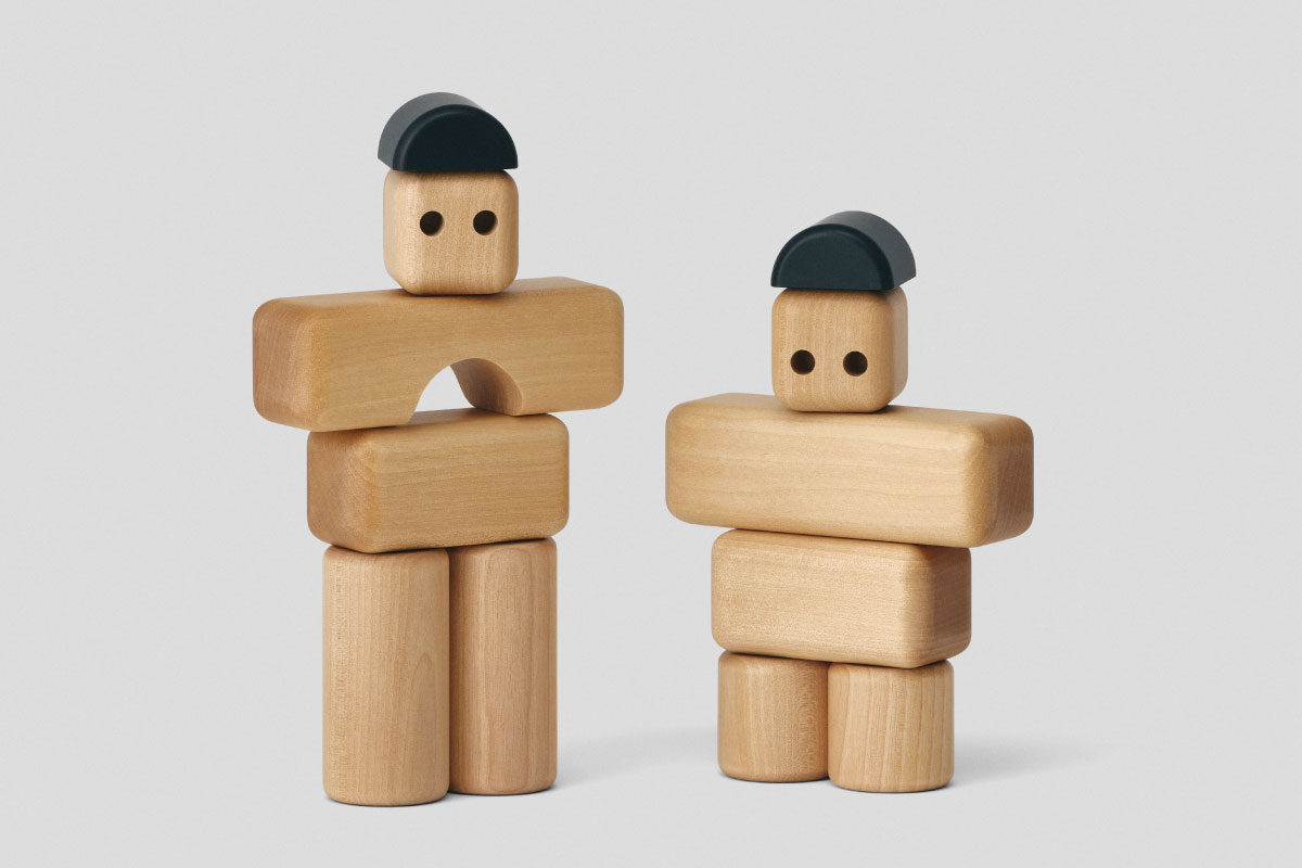 従来の四角い積み木とは違う丸みを帯びた独特のピースは、建物をつくるだけでなく、生き生きとした生き物を作ることもでき、自由な創造の世界が子どもたちの想像力を育ててくれます。 手に直接触れる優しい触感は無垢材をひとつずつ職人の手作業で作られていて、お子様でも持ちやすい大きさにもこだわっています。 作品はオブジェのように可愛らしく空間に飾って楽しんでいただくこともできます。