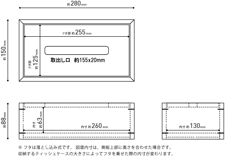ティッシュペーパーを使用し量が減少するに従い、上蓋が下がっていきますので、最後の1枚まで取り出し易くストレスなく使えます。適度に重量感もありますので、テッシュペーパーを勢いよく引き出してもボックスが浮き上がらず安定しています。以前はプラスチック製の製品を使っていましたが、引き出す際にボックスに片手を添えて固定する必要がありました。機能性もデザインも素晴らしい商品です。 -