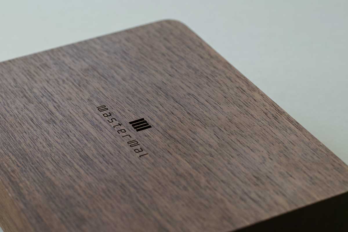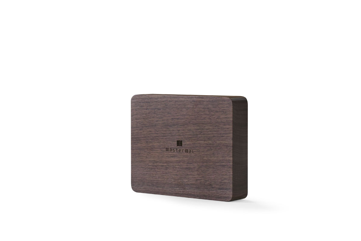 ウォールナット材を削り出し、L半サイズがぴったりおさまるサイズ。 角のアールを取ったデザインは見た目やさしく、手にすると角がない柔らかさを実感します。 表面・裏面の真ん中にマスターウォールロゴを配置。 空間のアクセントとなる無垢の質感をお愉しみください。