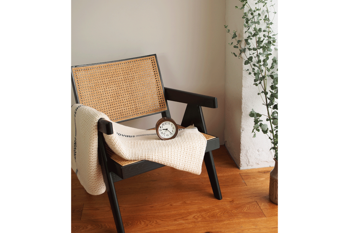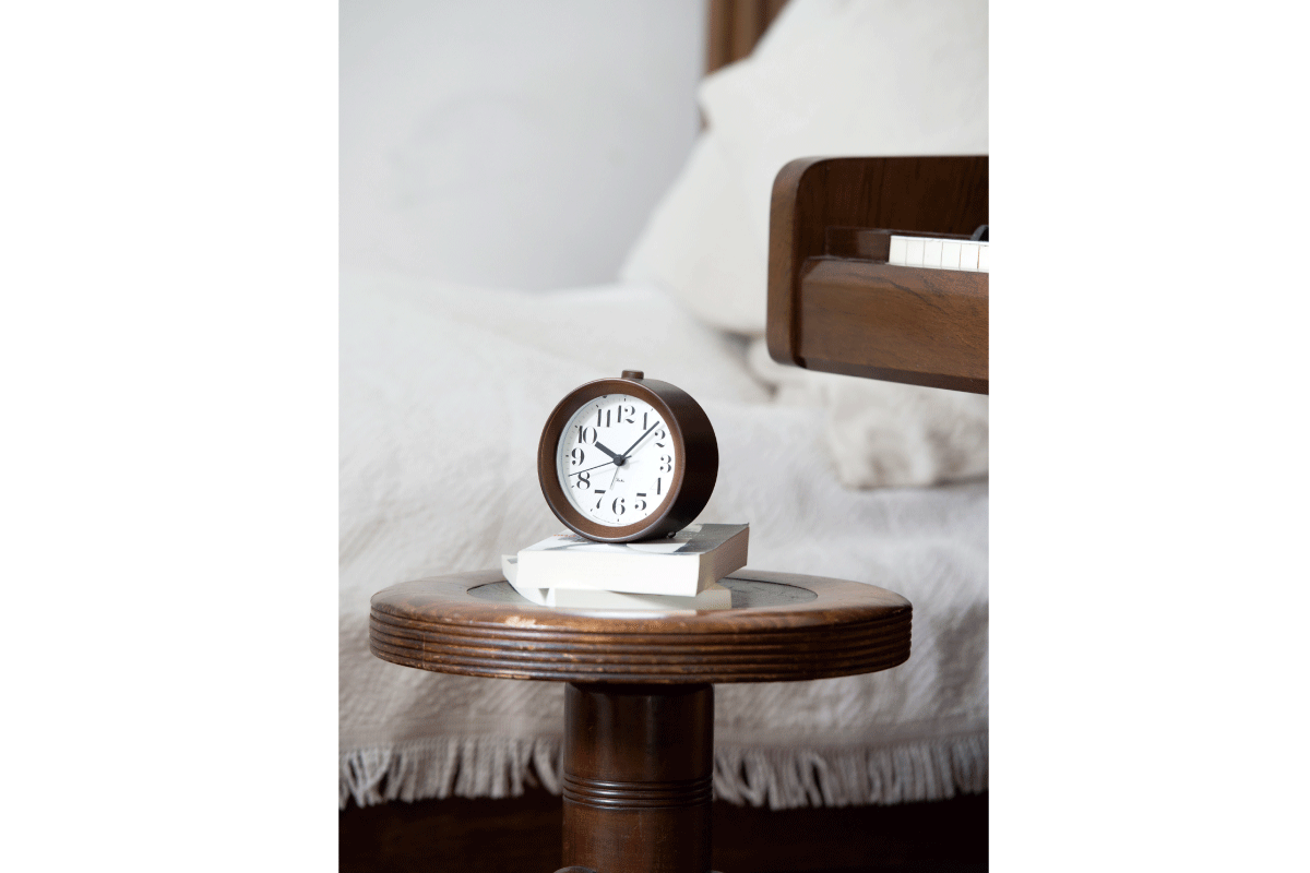 RIKI ALARM CLOCKは、大きめの12個の数字を使用した視認性の高い文字盤とシンプルなフォルムが美しく融合されています。 木製の丸みを帯びた枠体は、軽やかで、柔らかな印象を与えます。木目の美しさが特徴的です。