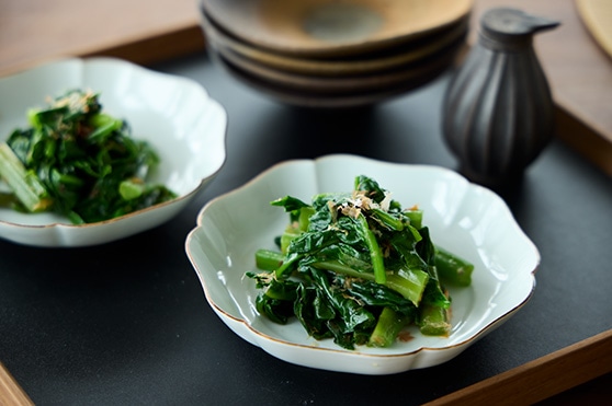 根本から入れて色よく茹でてざるに取り出して冷ます。