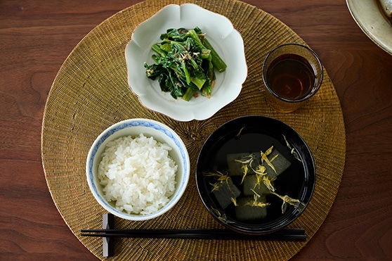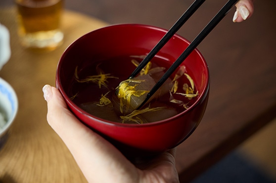 鍋にだし汁を入れて煮立て、薄口しょうゆ、塩を加えて混ぜ、2を加えてひと煮する。